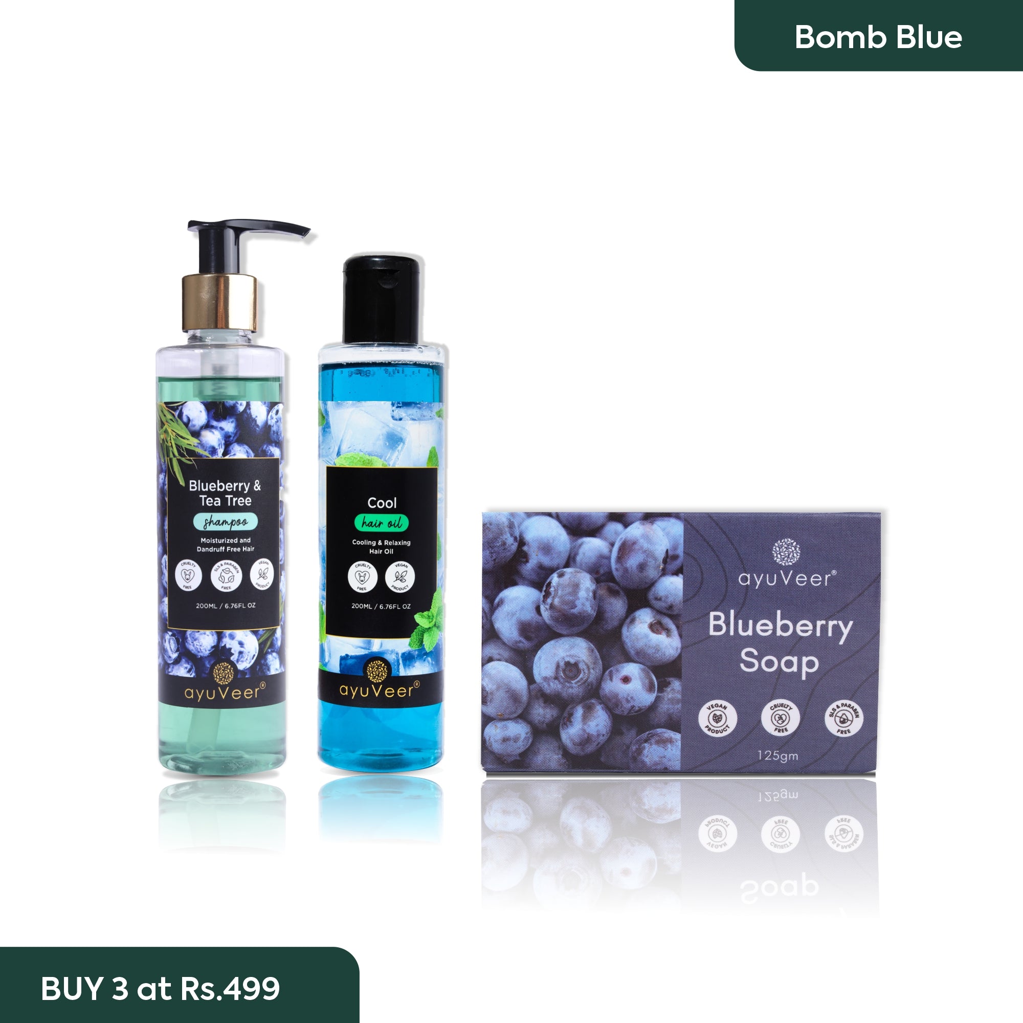 Blueberry Shampoo: Cleanses and nourishes the hair with the antioxidants of blueberry extract, leaving it soft and shiny. Blueberry Soap: Gently cleanses and deeply nourishes the skin with blueberry extract, promoting a healthy and glowing complexion. Cool Hair Oil: Provides a cooling and soothing sensation while nourishing the scalp and strengthening the hair with essential oils. |