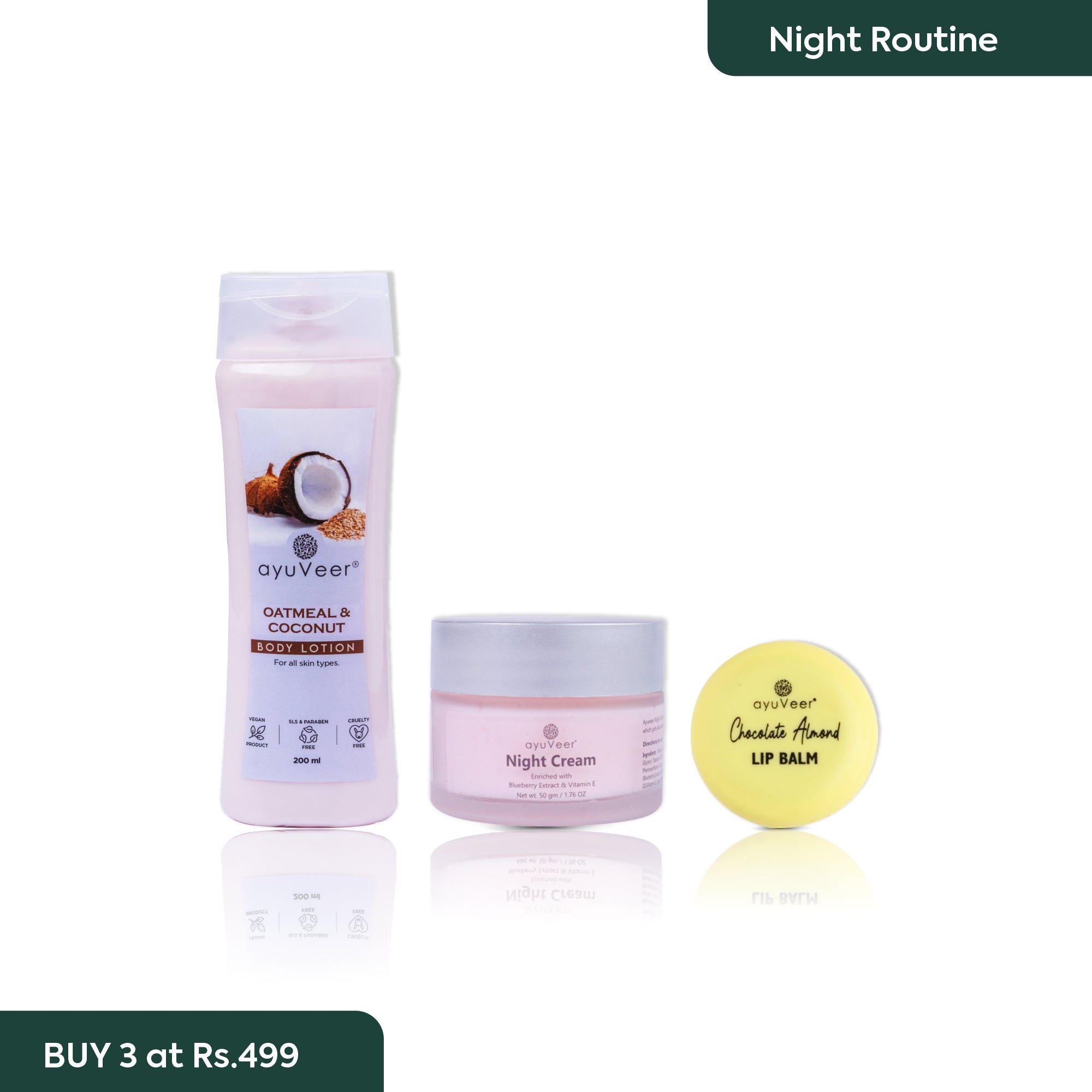 Chocolate Lip Balm: Moisturizes and soothes dry lips with a sweet chocolate scent, keeping them soft and kissable. Oatmeal & Coconut Lotion: Soothes and hydrates skin overnight with the rich blend of oatmeal and coconut, leaving skin supple and nourished. Night Cream: Repairs and restores skin overnight, providing intense hydration for soft, youthful, and radiant skin in the morning. |